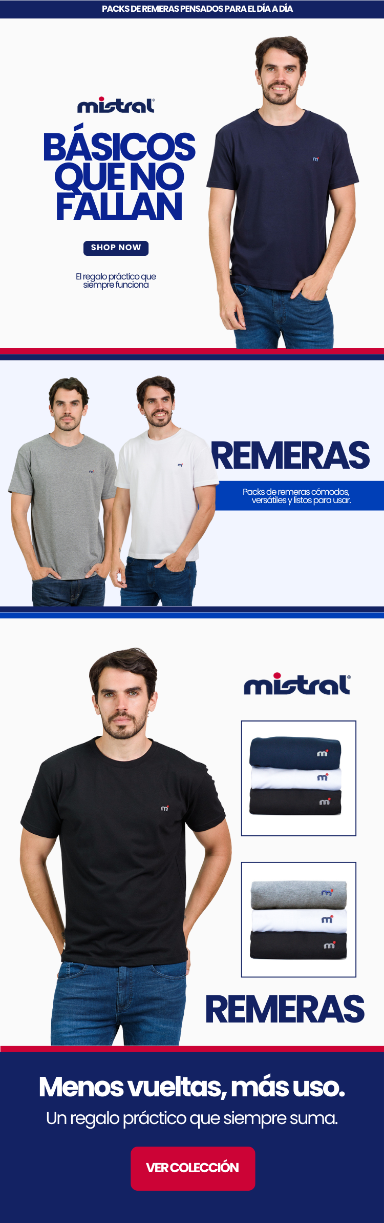 Packs de remeras Mistral para usar todos los días 💣